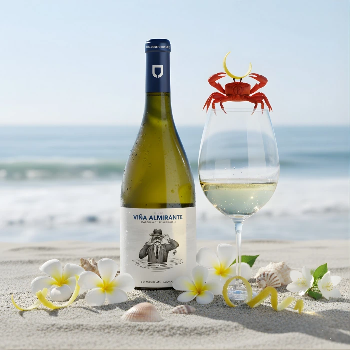 Clasicul cramei Viña Almirante poartă sigiliul tradiției: fructe albe, flori de citrice și o mineralitate sărată, venită parcă din briza Atlanticului.