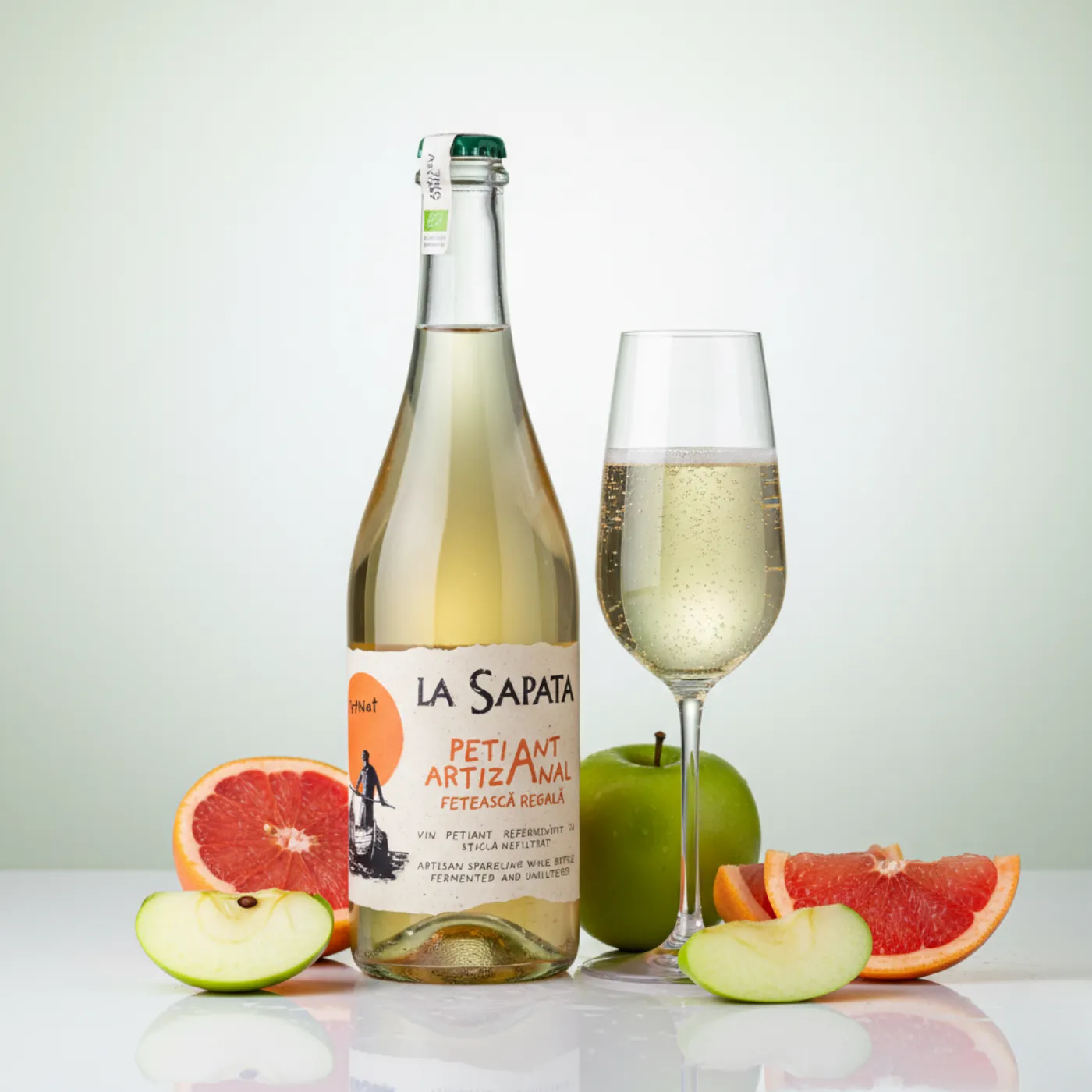 În inima Deltei Dunării, se ivește un pét-nat făcut din Fetească Regală, care pare scos din însăși știrile izvoarelor: bule fine, proaspete, și o acidozitate sprintenă ce spintecă aerul ca un stindard în vânt. Aromele evocă pâine coaptă, mere verzi și grapefruit într-un dans vesel, iar finalul răsună lung, ca o horă de toamnă.