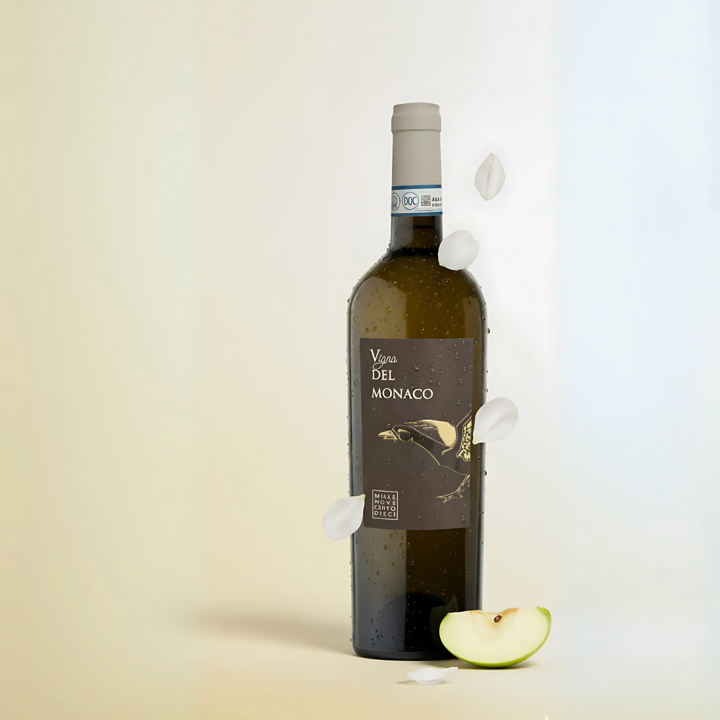 Din Campania, Vigna del Monaco aduce o Falanghina DOC care poartă lumina soarelui de pe colinele Sannio. Culoare galben-pai, clară ca o fereastră de biserică.